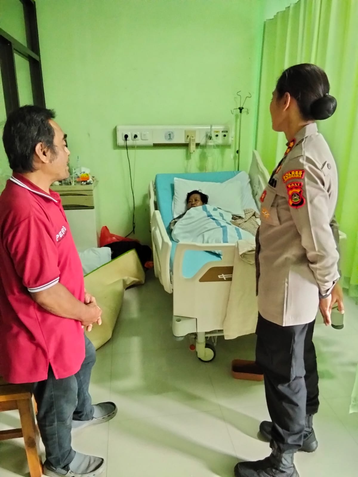 Kapolres Jembrana AKBP Kadek Citra Dewi Suparwati ,S.H.,S.I.K.,M.I.K. bersama Kasihumas Polres Jembrana Iptu Budi Arnaya mengunjungi pasien istri dari salah satu Awak Media yang sedang menjalani perawatan di Rumah Sakit Umum (RSU) Negara Kabupaten Jembrana, pada Jum’at, (29/8/2025).