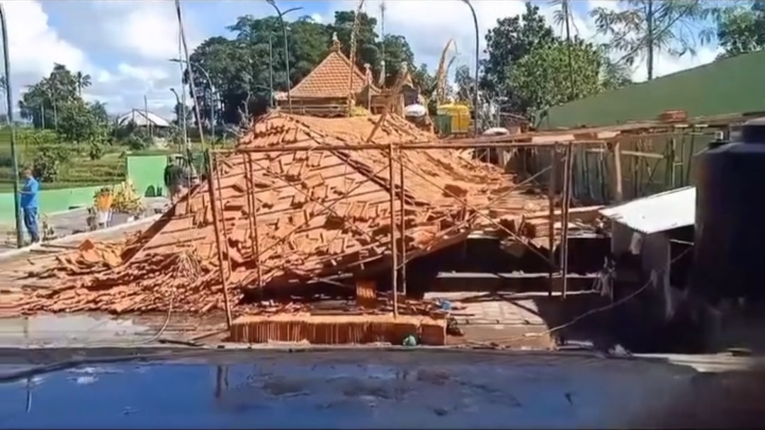 Robohnya bangunan tersebut hingga rata dengan tanah beberapa jam sebelum acara pemelaspasan yang direncanakan berlangsung pukul 13.00 Wita. Pada Selasa (24/12/2024).