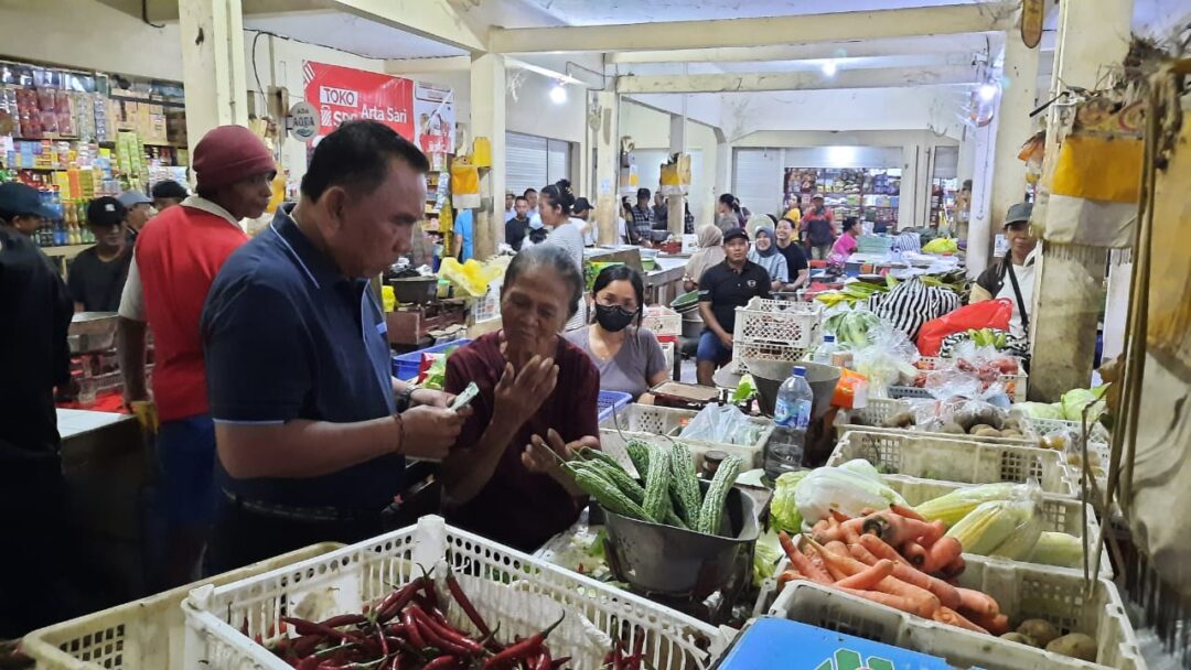 Paslon Tamba-Dana dan tim pemenangan tiba di Pasar Yehembang, sekitar pukul 05.15 Wita, langsung masuk ke dalam pasar menemui sejumlah pedagang dan pembeli.