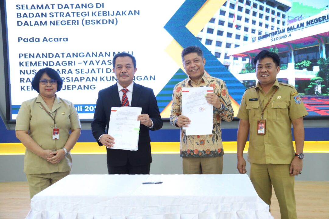 JAKARTA, wberita.com – Badan Strategi Kebijakan Dalam Negeri (BSKDN) Kementerian Dalam Negeri (Kemendagri) menandatangani Memorandum of Understanding (MoU) dengan Koso Nippon dan Yayasan Nusantara Sejati (YNS). Penandatanganan ini berlangsung di Ruang Rapat Command Center BSKDN pada Senin, 29 Juli 2024.