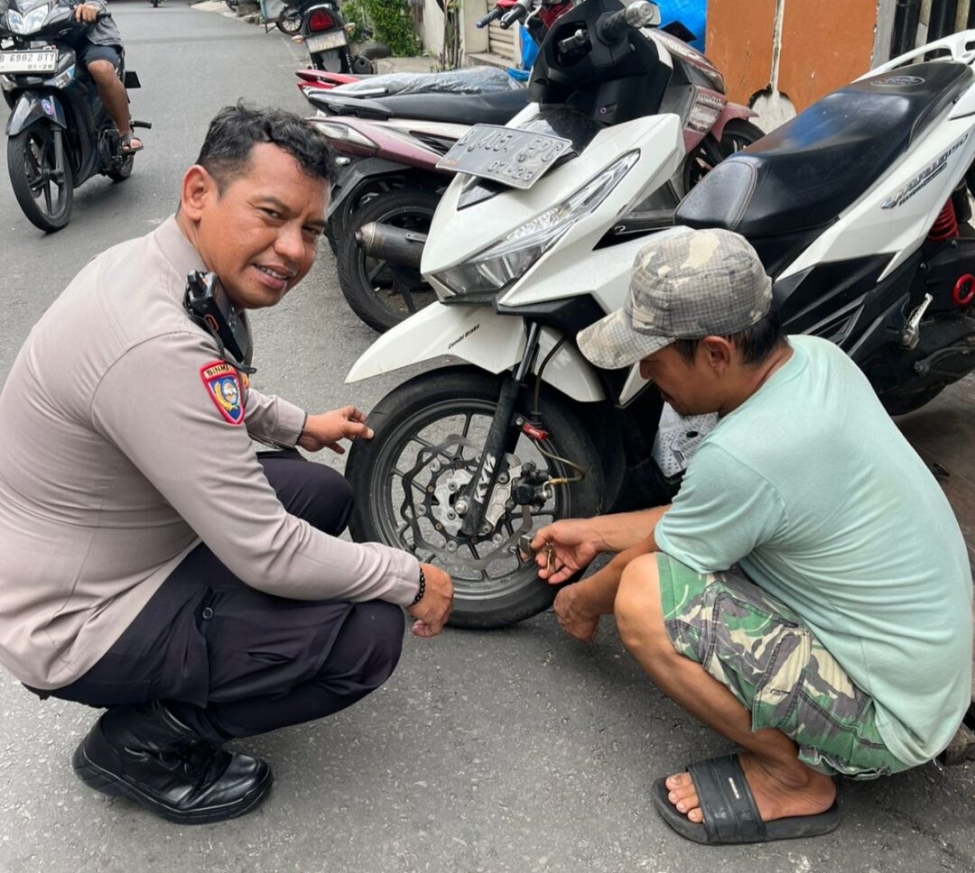 Dalam suasana yang akrab dan humanis, Bhabinkamtibmas memberikan edukasi pentingnya penggunaan kunci ganda dan gembok tambahan pada kendaraan bermotor.
