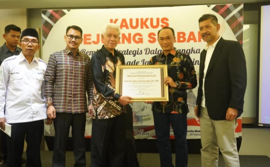 MAMUJU, wberita.com – Kinerja Pj Gubernur Sulbar Prof. Zudan Arif Fakrulloh dinilai betul-betul untuk kepentingan rakyat. Olehnya Para Tokoh Pejuang Pembentukan Sulbar memberikan penghargaan kepada Sestama BNPP itu, pada acara Kaukus Pejuang Sulbar di Novotel Hotel Makassar, Jumat, 26 April 2024.