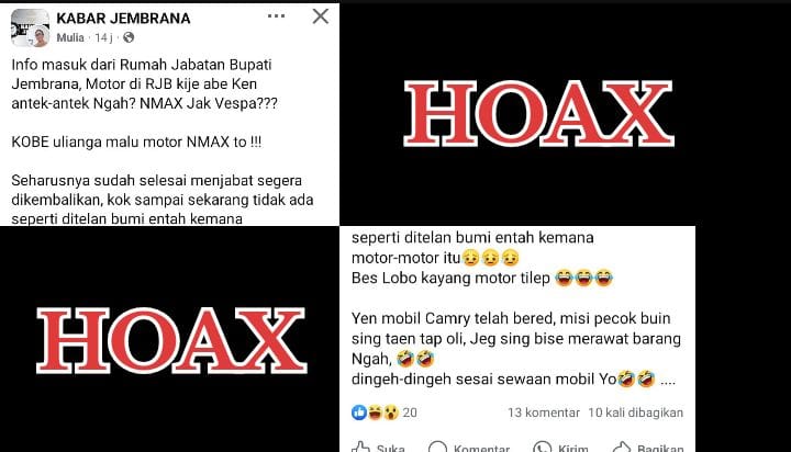 “Itu unggahan hoax. Itu pembunuhan karakter, tudingan yang tidak mendasar. Aset itu saya sudah kembalikan kepada Pemkab Jembrana ada bukti surat pengembaliannya,” tegas Kobe.