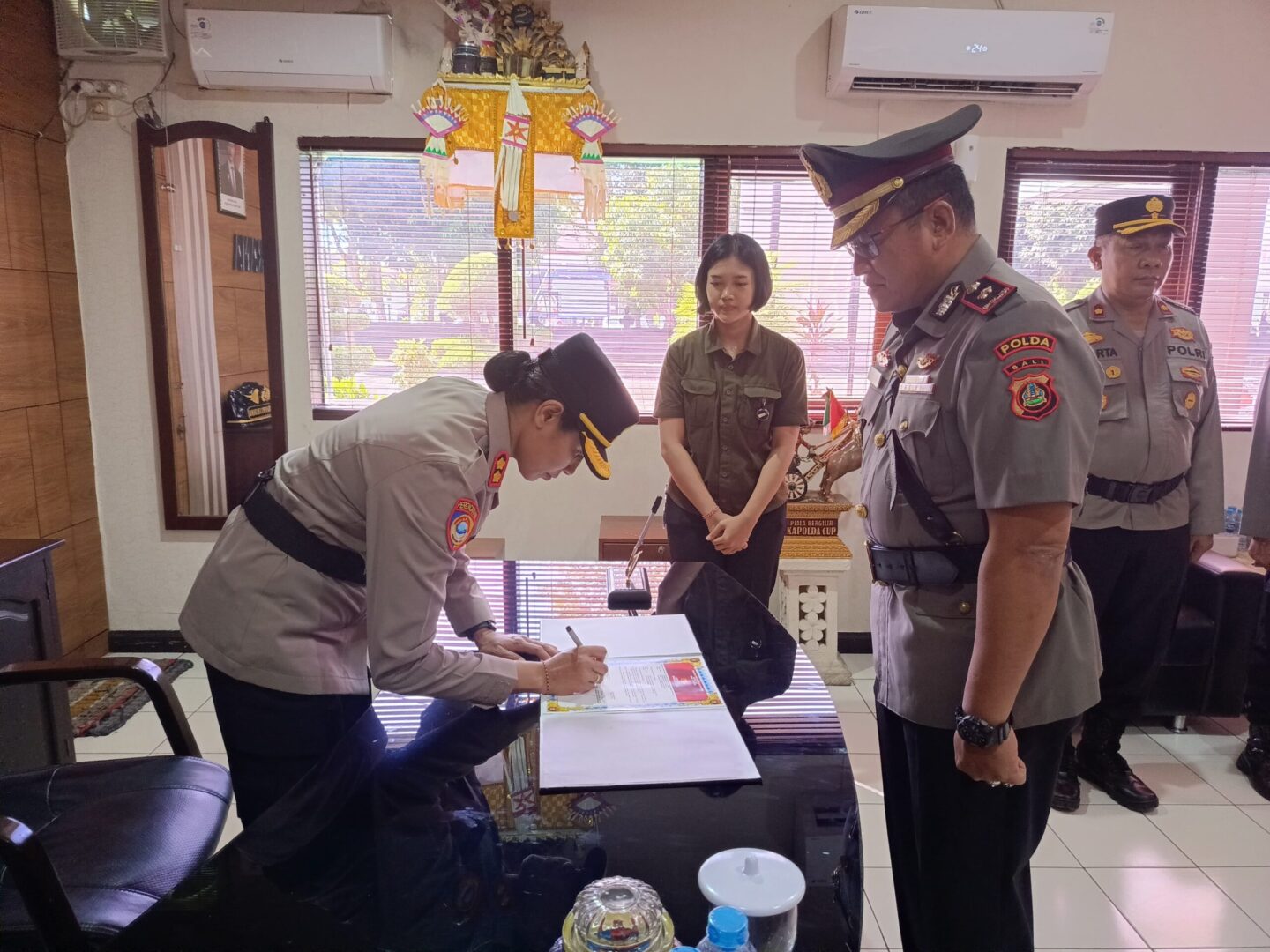 Kapolres Jembrana, AKBP Kadek Citra Dewi Suparwati, S.H., S.I.K., M.I.K., memimpin langsung prosesi penyerahan jabatan tersebut. Turut hadir Wakapolres Jembrana Kompol I Ketut Darta, S.H., Kabag SDM AKP I Putu Budi Santika, S.H., Kasi Propam AKP I Nyoman Yasa, serta Kasiwas IPTU Oscar Johan.