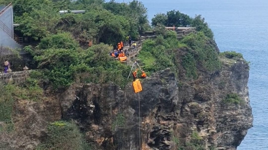 BADUNG, wberita.com ! Tim SAR gabungan berhasil mengevakuasi jasad seorang perempuan yang ditemukan di bawah tebing Pura Luhur Uluwatu, Kabupaten Badung, Bali, pada Kamis (9/1). Tubuh korban terlihat tertelungkup di antara bebatuan oleh saksi mata yang kemudian melaporkannya ke pihak berwenang.