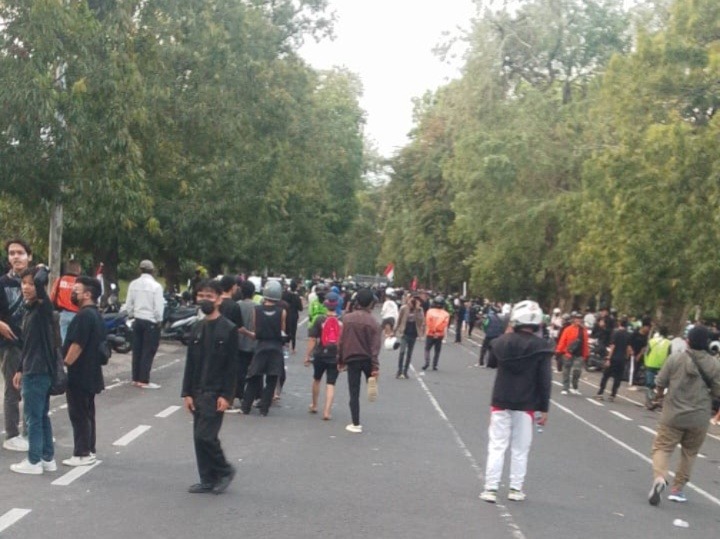 Suasana aksi demo di Renon dekat kantor DPRD Bali.