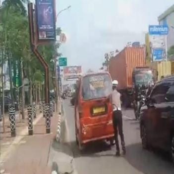 Kepadatan arus lalu lintas terjadi dikarenakan adanya mobil angkutan kota yang mogok ditengah jalan namun kasat lantas berhasil mengevakuasi ke tepi jalan.