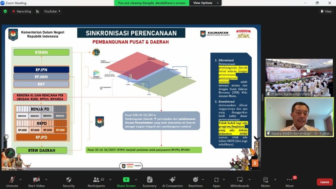 “Sinkronisasi dokumen perencanaan pembangunan daerah harus selaras dengan pembangunan nasional. Dengan begitu, saat menyusun perencanaan RKPD tahun 2025, Pemda perlu berpedoman pada RKP tahun 2025 yang saat ini juga sedang disusun, ini kunci penting pembangunan daerah,” tegasnya.