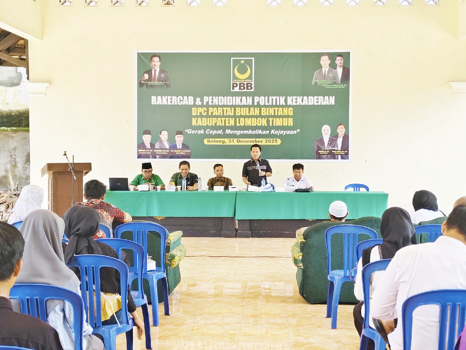 LOMBOK TIMUR – Sejarah selalu mencatat bahwa capaian besar lahir dari ikhtiar panjang, bukan dari proses yang instan. Berangkat dari kesadaran tersebut, Dewan Pimpinan Cabang (DPC) Partai Bulan Bintang (PBB) Lombok Timur menggelar Rapat Kerja Cabang (Rakercab) yang dirangkaikan dengan pendidikan politik bagi kader, Rabu (31/12/2025), bertempat di Kantor DPC PBB Lombok Timur.