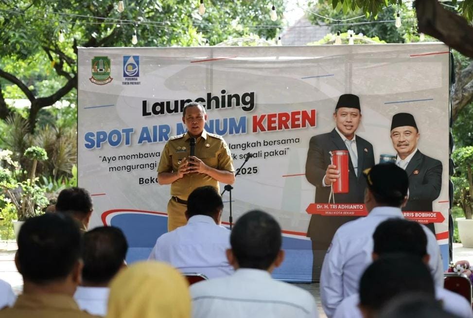 BEKASI, wberita.com ! Dalam upaya mengurangi sampah plastik sekaligus sebagai upaya pemenuhan kebutuhan air minum di ruang terbuka publik, Pemerintah Kota Bekasi bersama Perumda Tirta Patriot meluncurkan Spot Air Minum Keren di lingkungan Kantor Pemerintah Kota Bekasi Jl. A. Yani, pada Senin (15/12/2025).