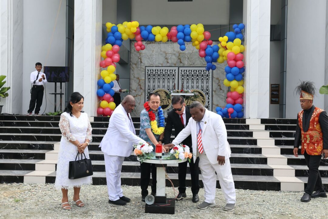 “Saya sebagai Ketua Umum Gereja Pantekosta di Indonesia (GPdI) bersama bapak Pj. Gubernur Provinsi Papua Agus Fatoni menandatangani batu prasasti sebagai peresmian dan dibukanya gereja ini. Dalam nama Bapa, Putra dan Roh Kudus,” ucapnya.