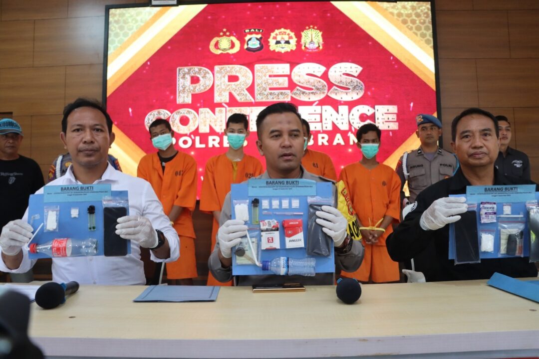 Empat tersangka yang diamankan antara lain Eka Sapta Fauzi, Radita Puji Maulana, Edy Septiawan, dan Agus Surya Hadi. Dari tangan mereka, polisi menyita sejumlah barang bukti, termasuk sabu-sabu, alat hisap, dan ponsel yang diduga digunakan untuk transaksi narkoba.