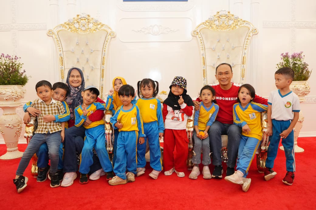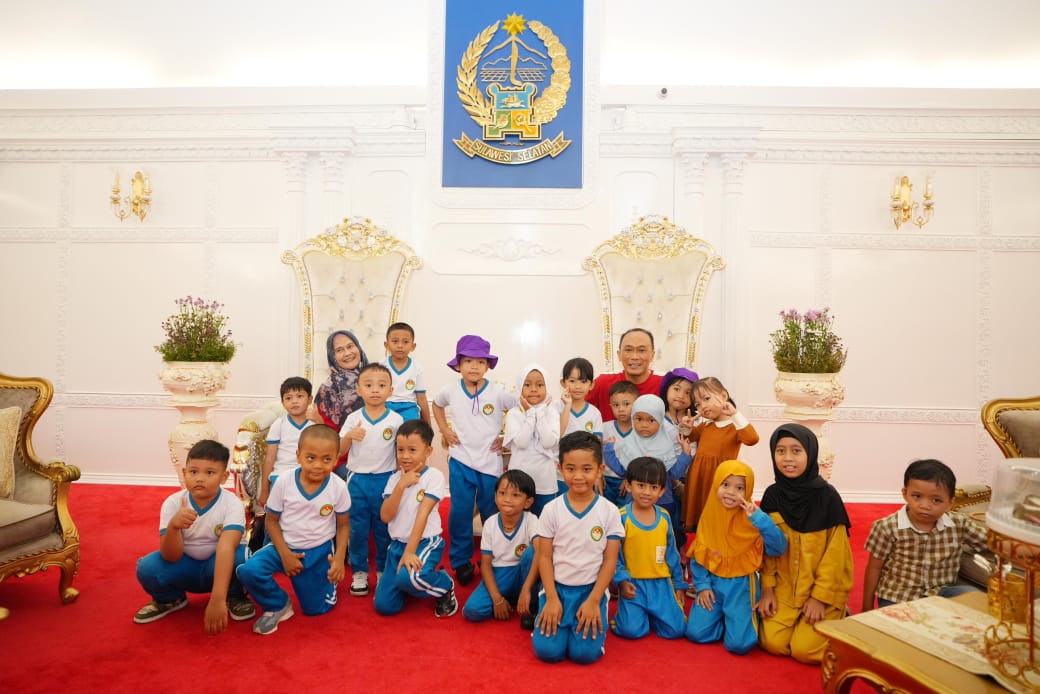 MAKASSAR, wberita.com! Penjabat Gubernur Sulsel, Prof Zudan Arif Fakrulloh dan Pj Ketua Tim Penggerak PKK Provinsi Sulsel, Ninuk Triyanti Zudan, menyambut puluhan anak-anak PAUD yang berkunjung ke Rumah Jabatan Gubernur Sulsel, Minggu, 1 Desember 2024.