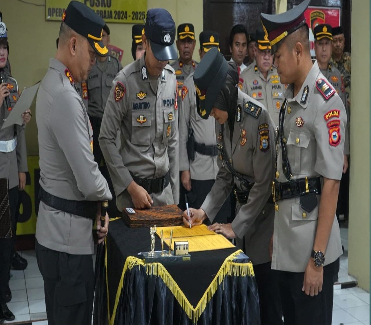 Dalam sambutannya, AKBP Restu Wijayanto menegaskan bahwa pergantian pejabat adalah upaya meningkatkan profesionalisme dan pelayanan kepada masyarakat.