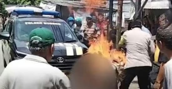 Aksi main hakim sendiri tersebut terjadi di Surabaya, Jawa Timur. Beruntung nyawa pria naas tersebut selamat setelah Polisi cepat tiba di lokasi memadamkan api dan memberikan pertolongan kepada terduga pelaku.