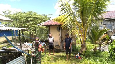 SUPIORI, wberita.com ! Babinsa Koramil 1708-04/Supiori Selatan, Serka Semmi Uhing melaksanakan kegiatan membersihkan halaman rumah…